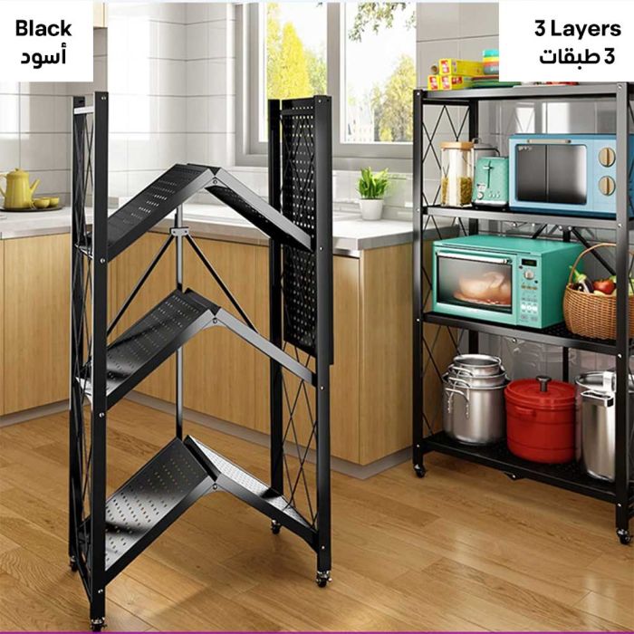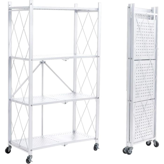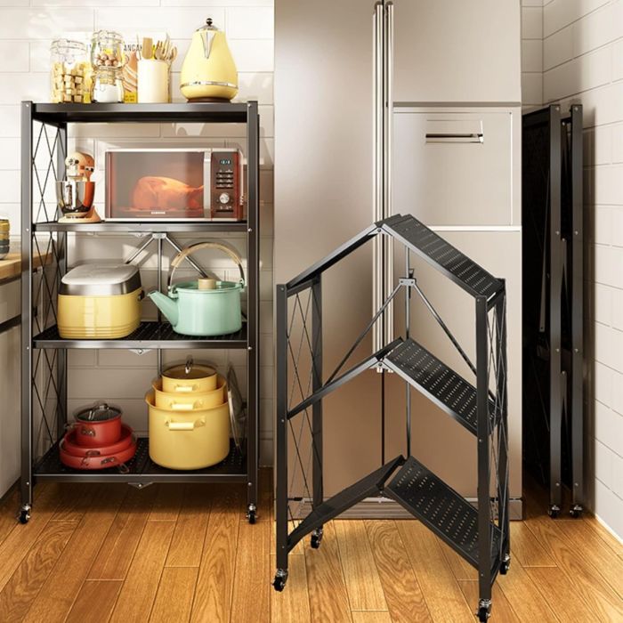 Foldable Multi-Tiers Metal Storage Rack with Wheels