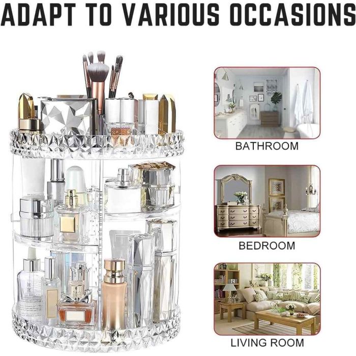 منظم مكياج دوار من الأكريليك بثلاثة أرفف