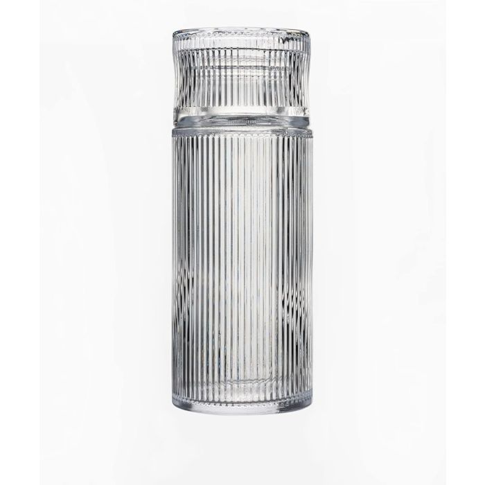 طقم إبريق الماء والكوب هذا، المصمم خصيصًا لوضعه بجانب السرير، يُعد إضافة أنيقة وعملية لأي طاولة جانبية. هذا الطقم مثالي لمن يبحث عن زجاجات بأغطية. الإبريق مصنوع من زجاج متين خالٍ من الرصاص، بسعة 730 مل، ويأتي مع غطاء مطابق للحفاظ على الماء طازجًا وآمنًا. تصميم الإبريق الأنيق يسهل عملية الصب. يتضمن الطقم أيضًا كوبًا زجاجيًا مطابقًا بسعة 160 مل، مثالي للاستمتاع بمشروب منعش. هذا الطقم مثالي لوضع الماء في متناول يدك أثناء النوم، أو لإضافة لمسة من الأناقة إلى غرفة الضيوف. صُنع هذا الطقم يدويًا بعناية، وقد يحتوي على شوائب وفقاعات صغيرة، مما يضفي عليه مزيدًا من التميز والجمال.