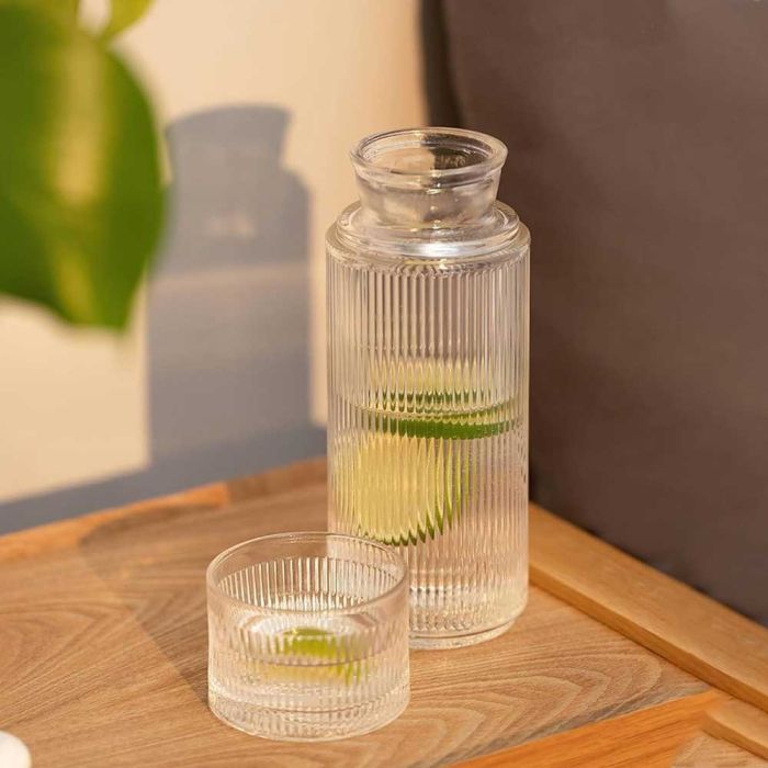 - تُعدّ أباريق الماء الزجاجية الخالية من الرصاص والأكواب الزجاجية خيارًا آمنًا وغير سام وصديقًا للبيئة للحفاظ على رطوبة الجسم طوال اليوم.