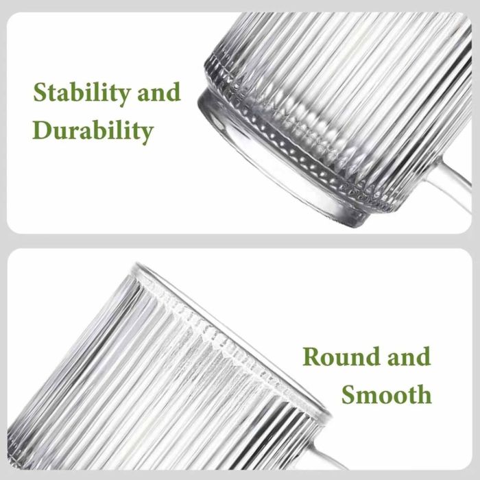 أضف لمسة من الأناقة إلى لحظات قهوتك مع طقم أكواب القهوة الزجاجية الفاخرة. تتميز هذه الأكواب بتصميم أنيق بخطوط عمودية ومقبض متين، لتجمع بين الجمال والعملية. صُمم كل كوب بعناية فائقة لتعزيز تجربة شربك، سواء كنت تستمتع بالقهوة الساخنة أو الشاي أو المشروبات الباردة. يتميز هذا الطقم المكون من 6 أكواب بالمتانة وسهولة التنظيف، وهو مثالي للاستخدام اليومي في المنزل أو المكتب أو عند استقبال الضيوف. إنه مزيج مثالي بين التصميم العصري والوظائف العملية اليومية.