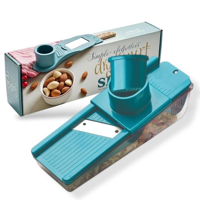 Make your kitchen preparations quick and simple with this versatile nut and dried fruit slicer. Designed for convenience, this tool features a built-in container for collecting and storing sliced ingredients. The sharp stainless steel blades slice almonds, cashews, pistachios, and even chocolate with minimal effort. The compact design is comfortable to use and easy to clean, making it the perfect tool for adding a professional touch to your favorite dishes and desserts.