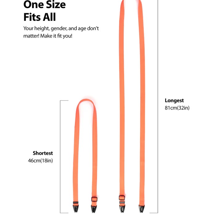 - طول قابل للتعديل: يتراوح من 91 سم إلى 163 سم؛ يمكن تحويله إلى حزام كتف، أو حزام كروس، أو حزام رقبة، أو حزام معصم.