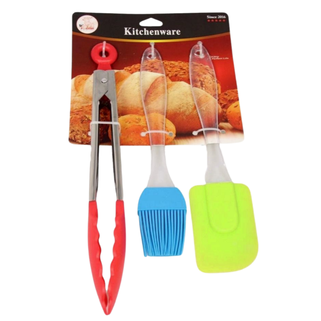 Silicone Spatula, Brush and Tongs – 3 Piece Set